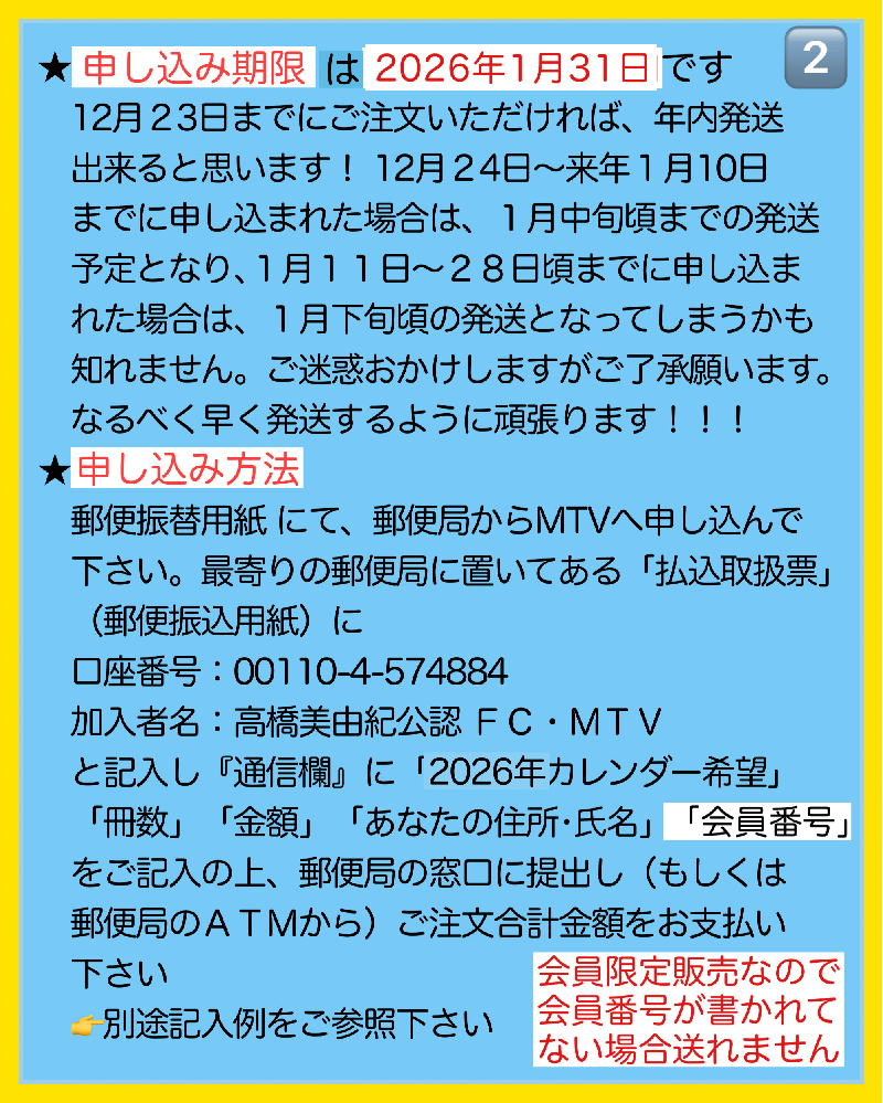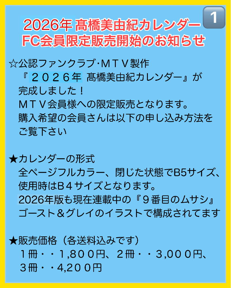 公認FC MTV制作 2026カレンダー発売!